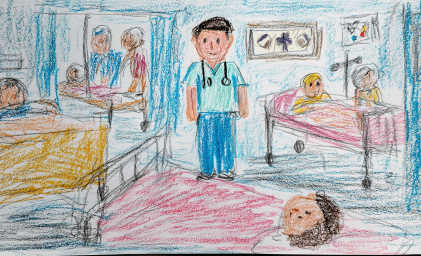 KI-generierte Kinderzeichnung zeigt Gesundheitspersonal